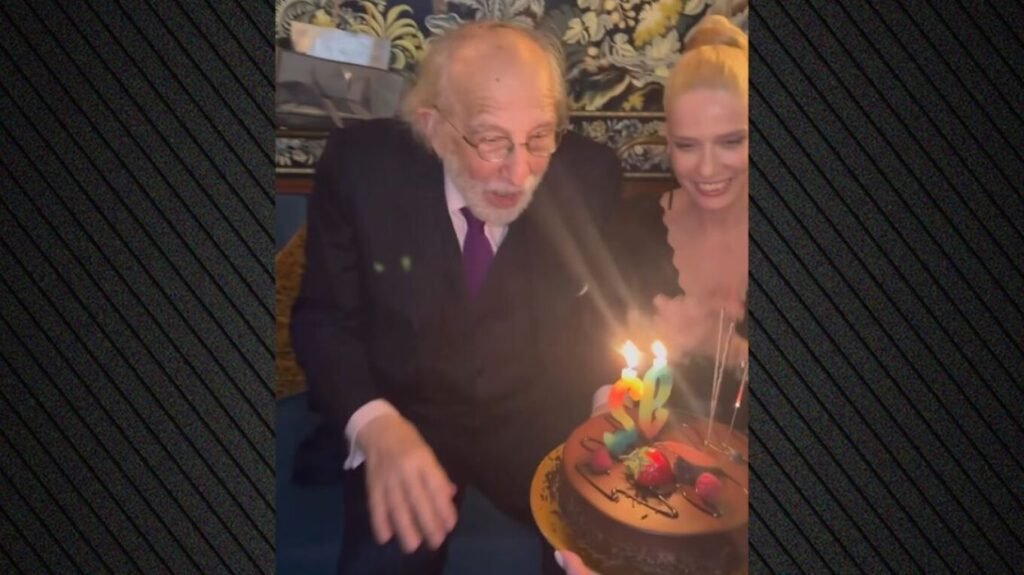 Στη συνέχεια, ο δικηγόρος έσβησε χαμογελαστός την τούρτα του, έχοντας δίπλα του τη σύντροφό του, ενώ οι παρευρισκόμενοι του τραγουδούσαν για τα γενέθλιά του.