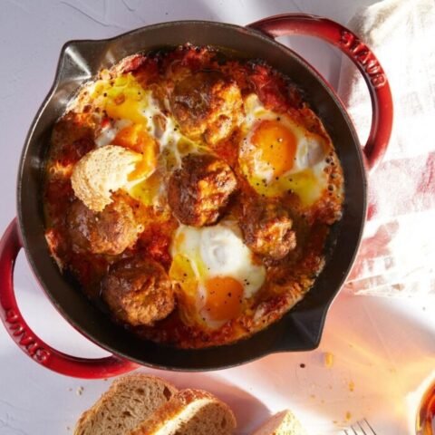 Μπιφτέκια με κόκκινη σάλτσα και αυγά