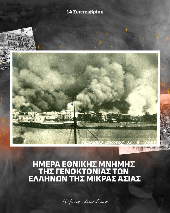 «Ημέρα Εθνικής Μνήμης της Γενοκτονίας των Ελλήνων της Μικράς Ασίας, η οποία καθιερώθηκε με ομόφωνη απόφασή της Βουλής των Ελλήνων στις 24/9/1998. Τιμάμε τη μνήμη των θυμάτων και τον Μικρασιατικό Ελληνισμό» αναφέρει με ανάρτησή στο κοινωνικό δίκτυο Χ o υπουργός Εθνικής Aμυνας Νίκος Δένδιας.