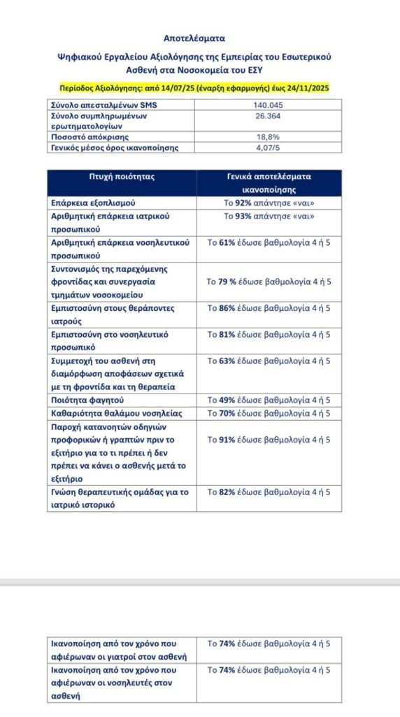Έχουμε ήδη βαθμολογία από πραγματικούς 26:364 ασθενείς, που μας απάντησαν αφού έλαβαν εξιτήριο. Γενικός μέσος όρος ικανοποίησης 4,07/5 …αυτό ειναι το “ΕΣΥ που καταρρέει…”….προχωρούμε στις Μεταρρυθμίσεις μας».