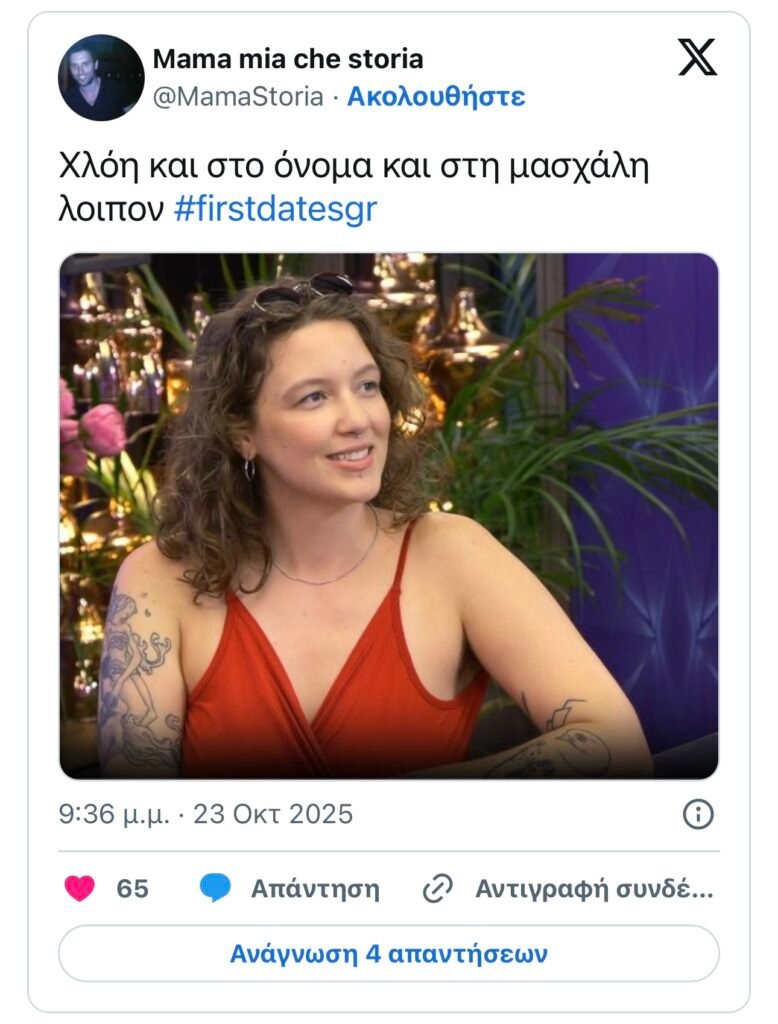 Ίσως τελικά αυτό να ήταν το πραγματικό νόημα του επεισοδίου. Όχι το ραντεβού, ούτε η αμήχανη ατάκα του Άρη, αλλά η στιγμή που όλοι συνειδητοποιήσαμε πόσο εύκολα μας σοκάρει η αλήθεια. Η Χλόη δεν έκανε τίποτα παραπάνω από το να υπάρξει όπως είναι, κι όμως αυτό αρκούσε για να ξεγυμνώσει μια ολόκληρη κοινωνία. Μια κοινωνία που θέλει να λέγεται σύγχρονη, αλλά ακόμη μετράει τη θηλυκότητα με βάση το ξυραφάκι και την αποδοχή με βάση την εικόνα. Ίσως το First Dates να μην έφερε έρωτα, αλλά μας έφερε μπροστά στον καθρέφτη, κι εκεί το είδωλο δεν είναι πάντα κολακευτικό.-