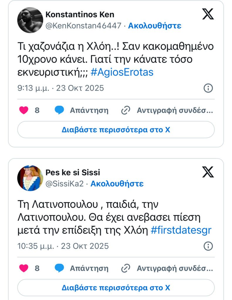Το Twitter πήρε φωτιά. Άλλοι τη λάτρεψαν, άλλοι τη διέσυραν, κάποιοι τη μετέτρεψαν σε σύμβολο και άλλοι σε ανέκδοτο. Κανείς όμως δεν έμεινε αδιάφορος. Είναι εντυπωσιακό πόσο εύκολα μπορούμε να φτάσουμε από μια απλή σκηνή τηλεοπτικού ραντεβού στο να συζητάμε για τα δικαιώματα του σώματος, για τη θηλυκότητα, για το πώς ορίζεται η «κανονικότητα». Κι όμως, αυτό ακριβώς είναι το ενδιαφέρον της υπόθεσης. Η Χλόη δεν πήγε να διδάξει τίποτα. Πήγε σε ένα ραντεβού, ίσως με την ελπίδα να γνωρίσει κάποιον, και βρέθηκε να κρατάει έναν καθρέφτη απέναντι σε όλους μας.