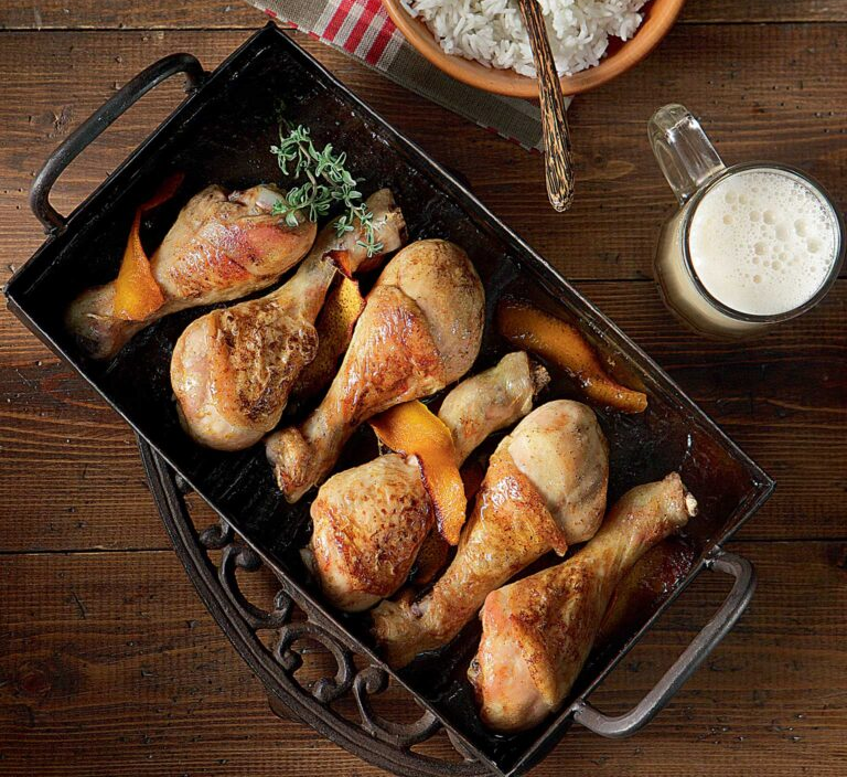 Ψημένα σε μπίρα, αρωματισμένα με φλούδες πορτοκαλιού, τα μπουτάκια κοτόπουλου γίνονται ζουμερά και νόστιμα. Με πατάτες φούρνου και μια καροτοσαλάτα είναι τέλεια.