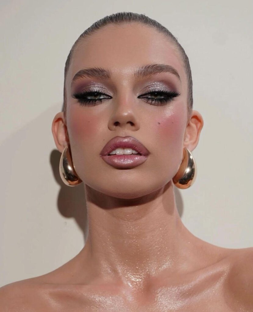 Έντονα χείλη, βαθύ βλέμμα, σκιές που σβήνουν απαλά, δημιουργώντας μυστήριο χωρίς υπερβολή. Τα μαλλιά συνήθως πιο στιλπνά, πιο ελεγχόμενα, με χαρακτήρα.
