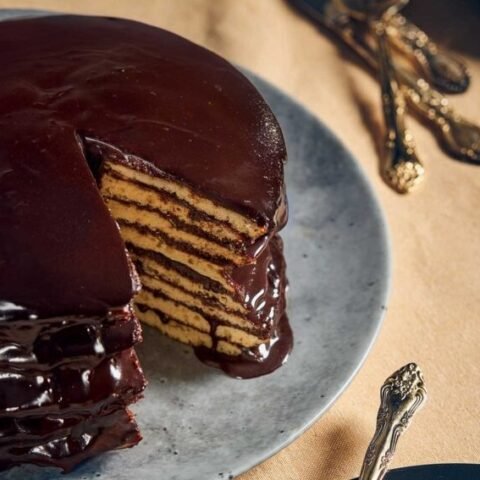 Βγάζουμε, ξεφορμάρουμε, αφήνουμε να ξεπαγώσει ελαφρώς και κόβουμε σε τρίγωνα κομμάτια.