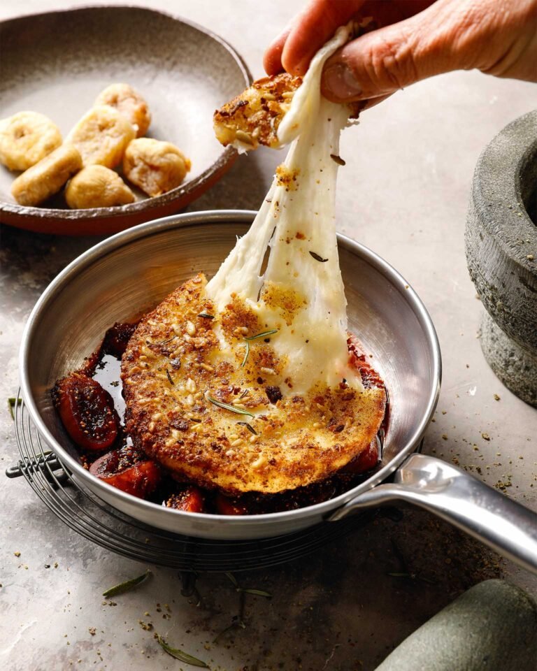 Σαγανάκι με λαδοτύρι και σάλτσα ξερών σύκων
