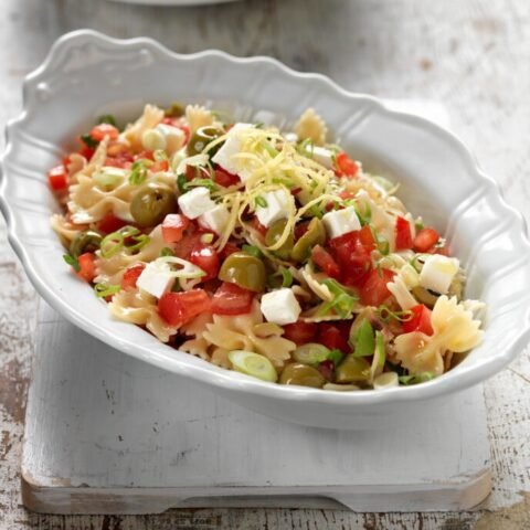 Φαρφάλες με ντομάτα, ελιές και φέτα