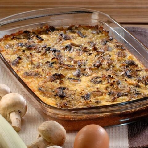 Ομελέτα φούρνου με φρέσκα κρεμμυδάκια, μανιτάρια και φέτα