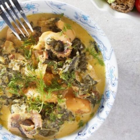 Σουπιές φρικασέ με σπανάκι