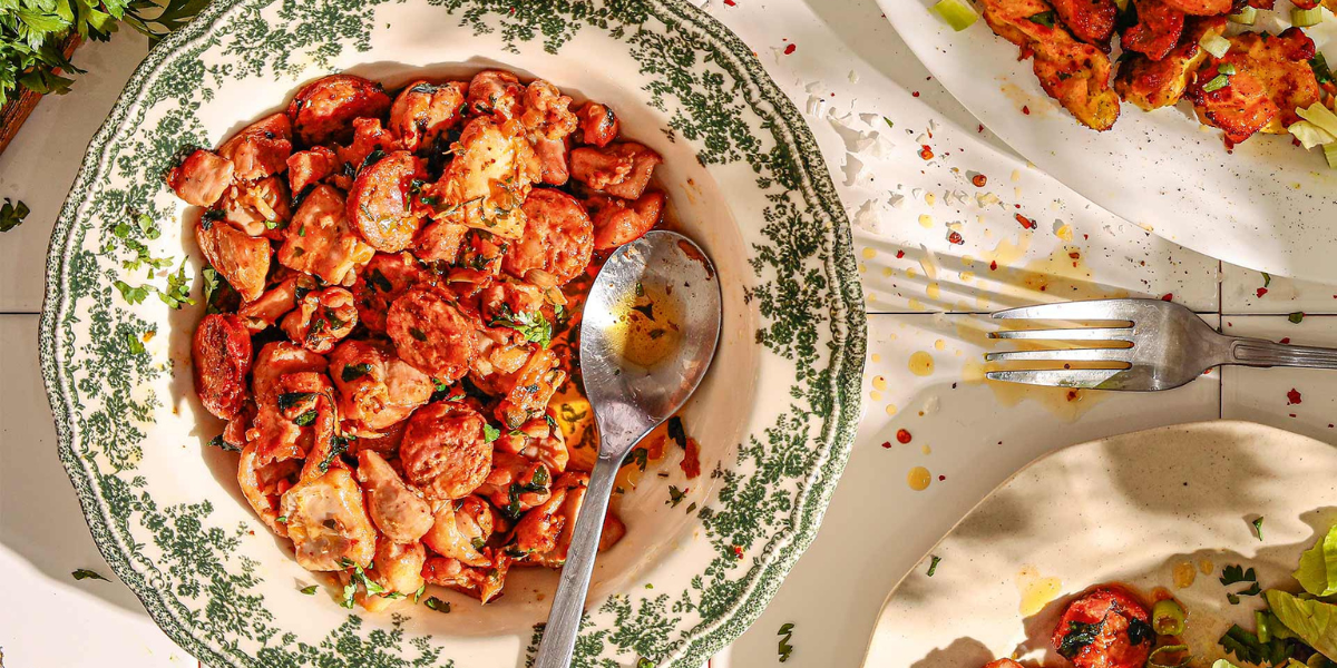 Τηγανιά με κοτόπουλο, λουκάνικα και μπίρα