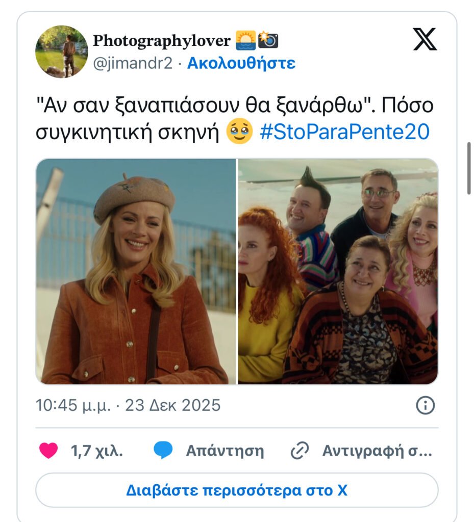 Δεν χρειάστηκε καμία ιδιαίτερη προαναγγελία για να καταλάβεις ότι αυτό που θα δεις δεν θα είναι απλώς «άλλο ένα reunion». Το κατάλαβες από τη σιωπή λίγο πριν ξεκινήσει. Από εκείνη τη σπάνια παύση που συμβαίνει μόνο όταν το κοινό δεν περιμένει εντυπωσιασμό, αλλά κάτι που ήδη γνωρίζει. Το «Στο Παρά Πέντε – 20 χρόνια μετά» δεν ήρθε ως τηλεοπτικό προϊόν της νοσταλγίας, ήρθε ως τεστ μνήμης και το πέρασε με άνεση!