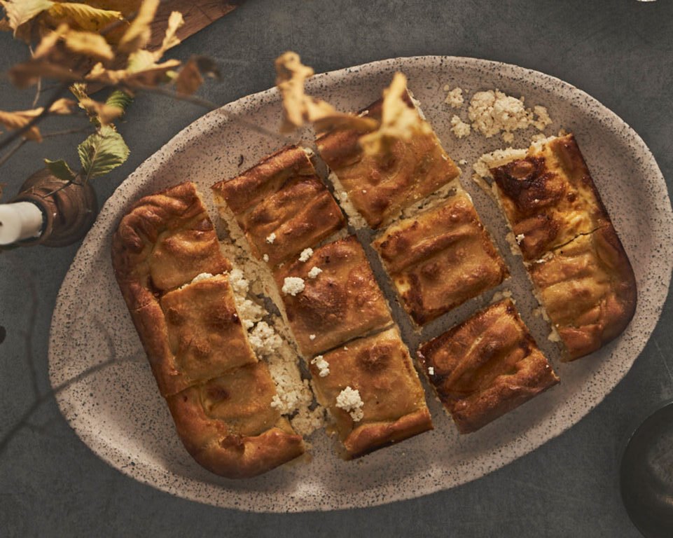 Μια μοναδική συνταγή για παραδοσιακή τυρόπιτα Πελοποννήσου με φέτα και περίτεχνο χειροποίητο φύλλο.